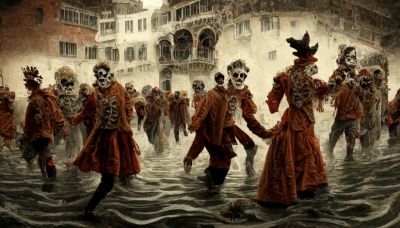 ...>>м, напоминала маскарадные костюмы, ассоциировавшиеся, прежде всего, с венецианским карнавалом, и исчезала при выходе из SCP-2264-B. Маски на территории SCP-2264-B не снимаются, но остальные предметы одежды при желании могут быть удалены. Большинство обитателей SCP-2264-B одеты аналогичным образом; исследователи отмечали органический характер их костюмов, часто описывая их как "хитиновые". Большая часть обитателей SCP-2264-B представляют собой гуманоидные сущности; им присвоено обозначение SCP-2264-1.